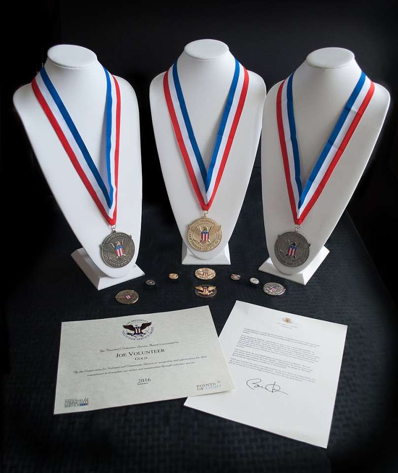 Awards are granted at Bronze, Silver, and Gold levels, based solely on documented and verified volunteer service hours.